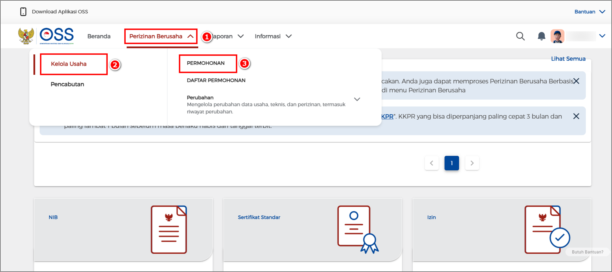 b. Klik menu Perizinan Berusaha dan pilih Permohonan